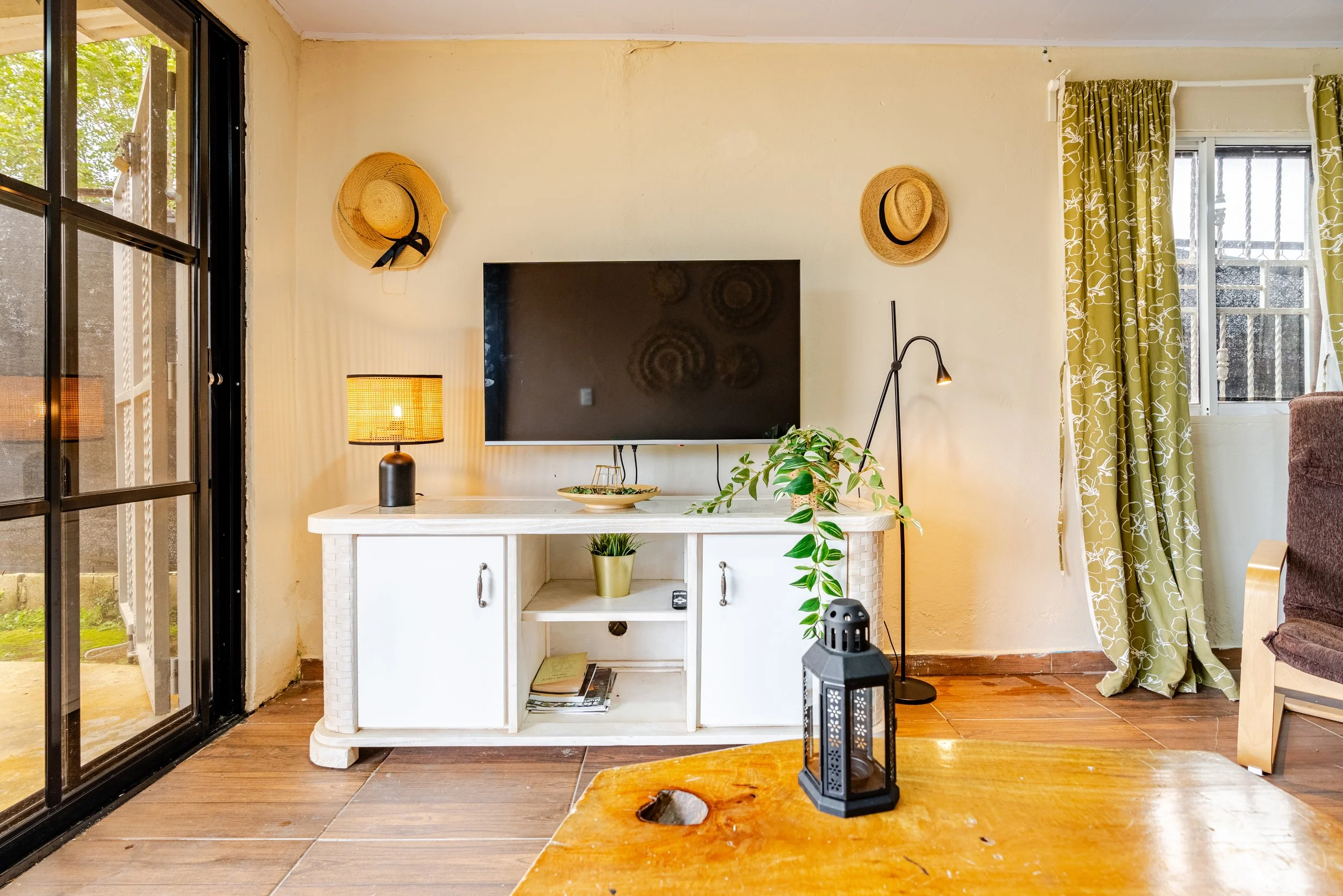 La casa tiene capacidad para 4 personas y cuenta con 2 habitaciones, cocina equipada , baño con agua caliente , WIFI, tv por cable, bbq a carbon, parrila de fogata , hamaca